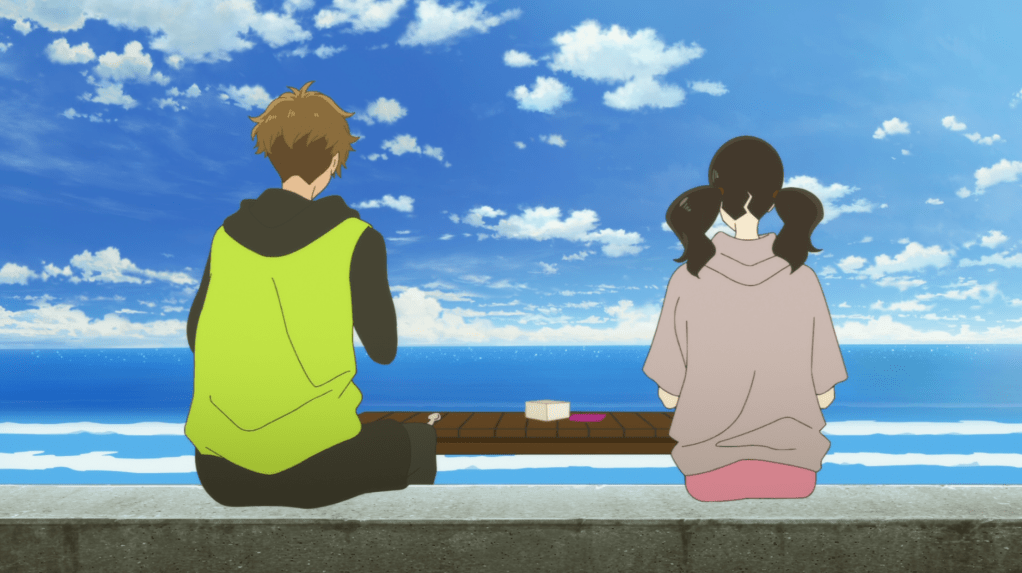 Ces dynamiques ont la particularité de ne jamais être unidirectionnelles. Plutôt que de systématiquement figurer des relations où une entité “forte” élèverait une entité “faible”, les personnages contribuent au contraire à leur salut et leur émancipation mutuels. Yuasa établit ainsi tout au long de son oeuvre un principe d’échange équivalent au sein duquel l’évolution et l’accomplissement de soi sont des expériences forcément partagées et nourries par la réciprocité. Plus que dans la force individuelle, le salut de notre espèce se trouverait dans l’ouverture. Cette vision humaniste structure l’ensemble de la création du cinéaste, à des degrés d’échelle et de gravité différents, des enjeux apocalyptiques déments d’un Devilman Crybaby au “simple” drame humain de Ride Your Wave. Ainsi, si Hinako semble d’abord s’inscrire dans une posture de détresse et de besoin de guidance, elle est en réalité celle grâce à qui Minato a pu accomplir sa véritable vocation. L’idée d’une histoire commune enfouie, renforçant le caractère évident du lien des protagonistes, est également l’une des récurrences favorites de Masaaki Yuasa. Le réalisateur reproduit d’ailleurs ce schéma en filigrane au travers de la relation, plus effacée mais tout aussi essentielle, entre Yoko et Wasabi, respectivement sœur et meilleur ami de Minato.