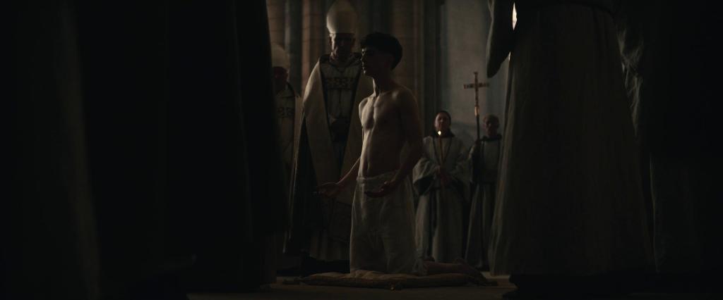 Là où le long-métrage d’Orson Welles apparaissait comme une oeuvre anti-système, production hispano-suisse d’un américain n’ayant jamais trouvé grâce aux yeux de son pays d’origine, celui de David Michôd est la consécration d’un talent prometteur australien, d’abord cantonné à des productions locales avant que ne s’ouvrent à lui les portes d’Hollywood. Son arrivée sur Netflix sous la houlette de Brad Pitt avec War Machine aura permis à Michôd de s’assurer un soutien financier confortable pour porter à l’écran son adaptation shakespearienne. The King s’inscrit ainsi pleinement dans la grammaire de la fresque médiévale, genre assez discret à l’heure actuelle et dont le dernier représentant de marque est probablement le Kingdom of Heaven de Ridley Scott (2005).